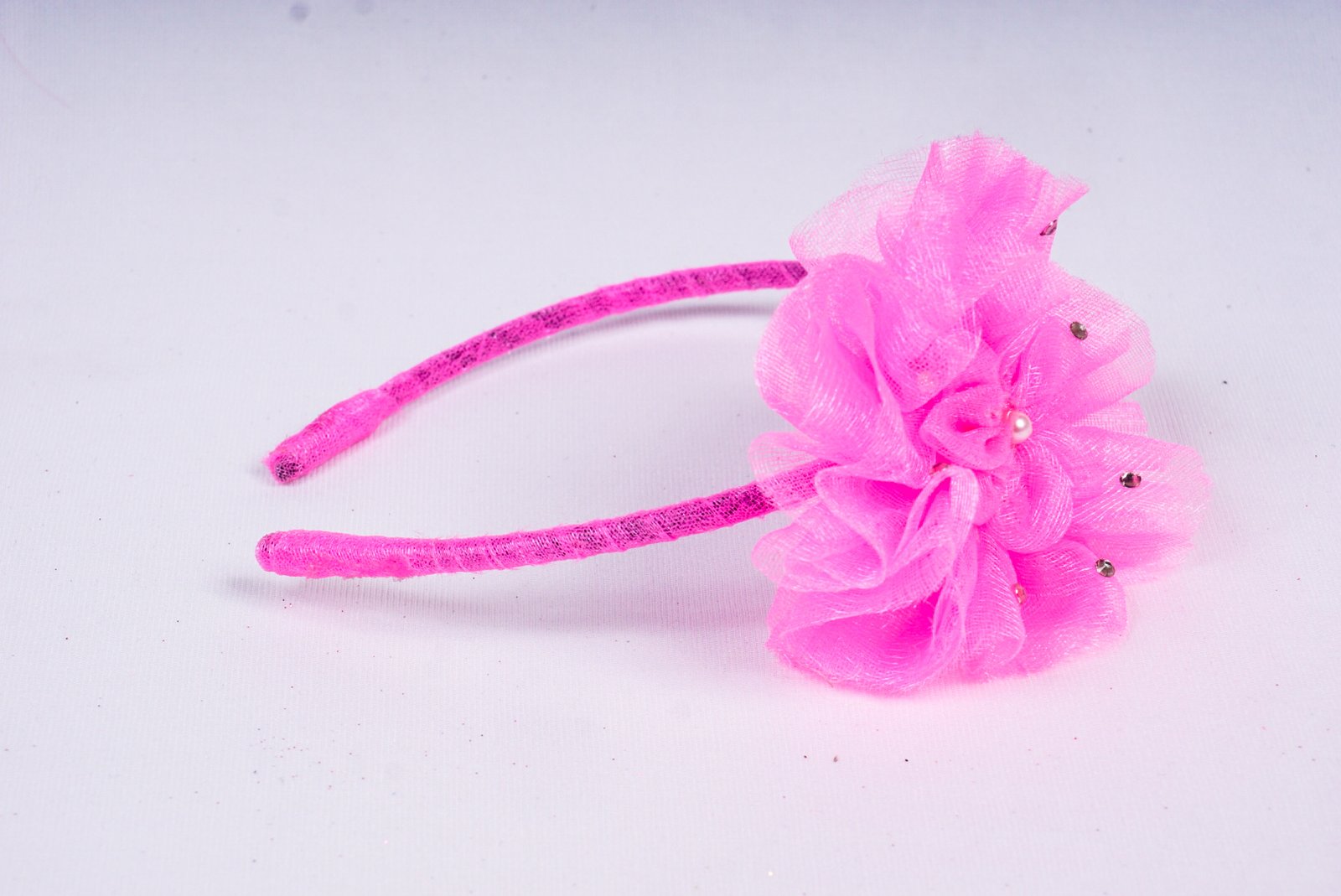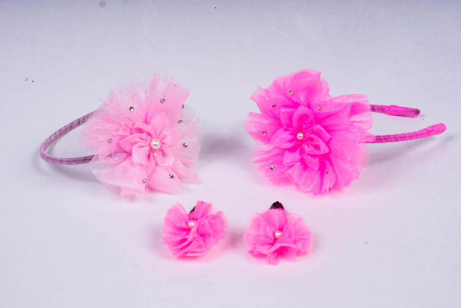Antho Stylish Hair Band & Clip Set | Pink Net Cloth Floral Design Hair Accessories for GirlsAntho Stylish Hair Band & Clip Set | Pink Net Cloth Floral Design Hair Accessories for Girls