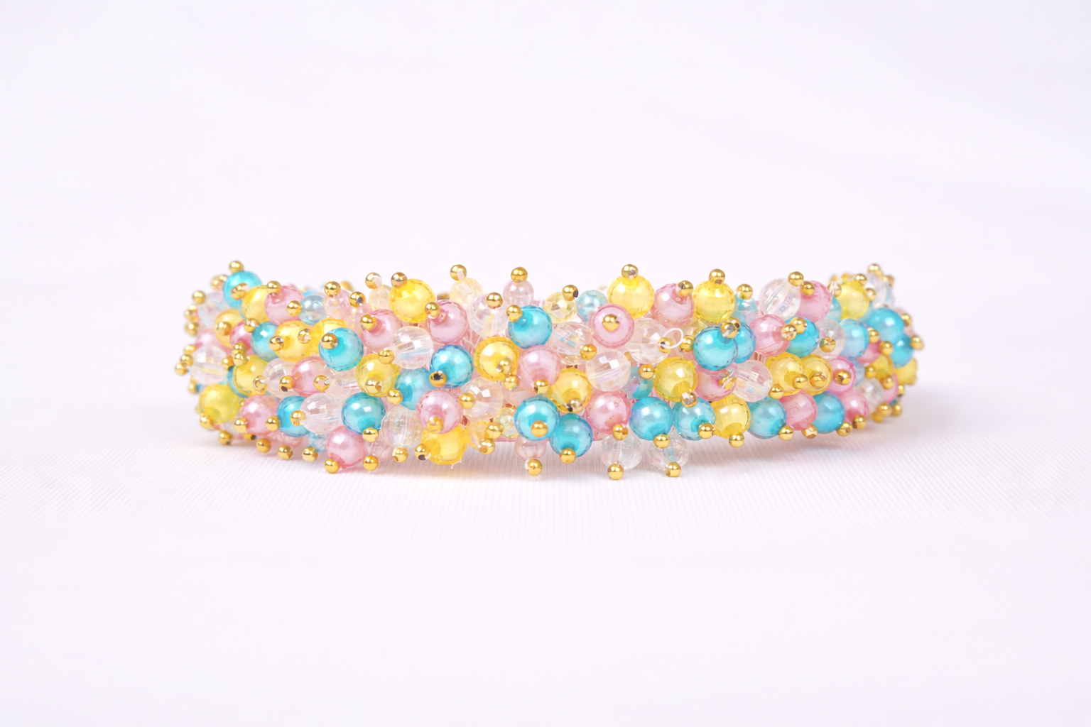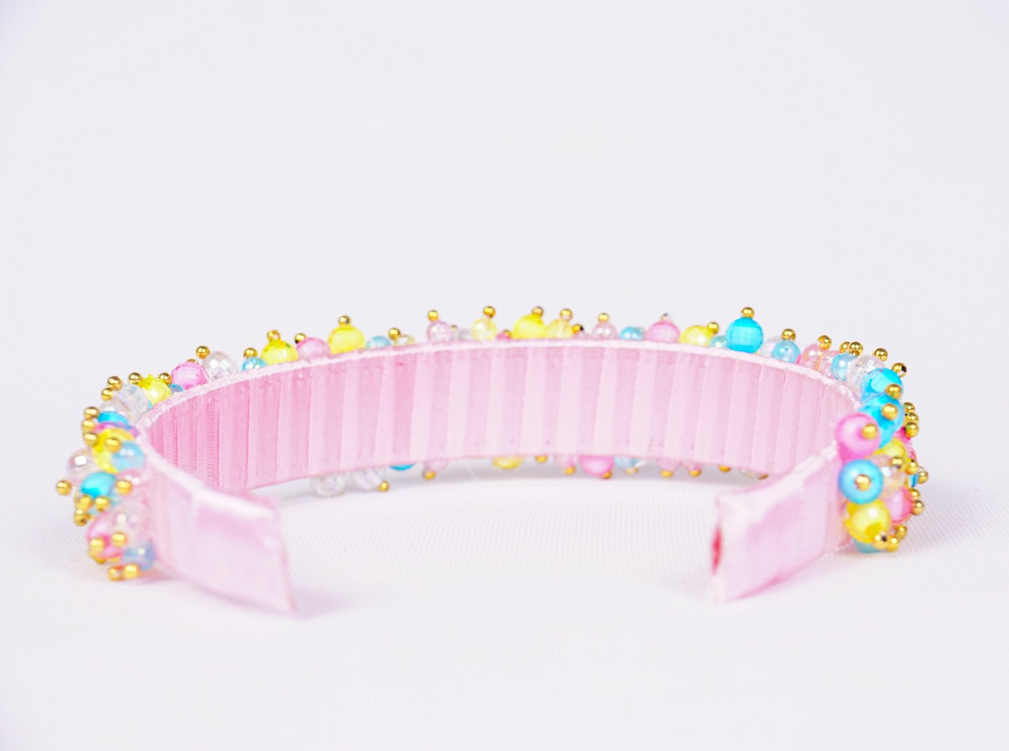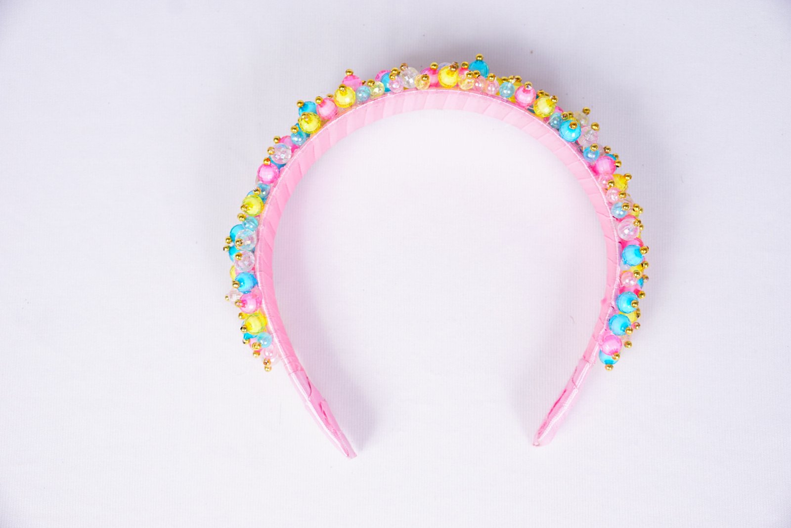 Enhance your look with the Bonvo Beauty Brideo Pink Ribbon Hairband, a stylish and elegant hair accessory for women and girls. Designed with a soft pink ribbon and adorned with multicolour beads, this handcrafted hairband adds a beautiful touch of sparkle and charm to any hairstyle.
