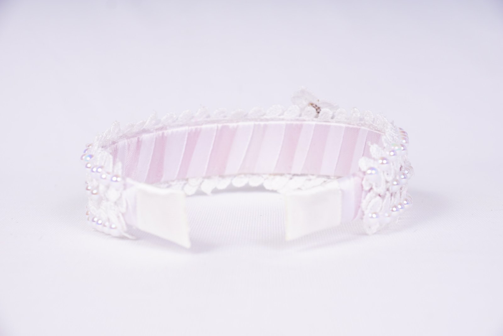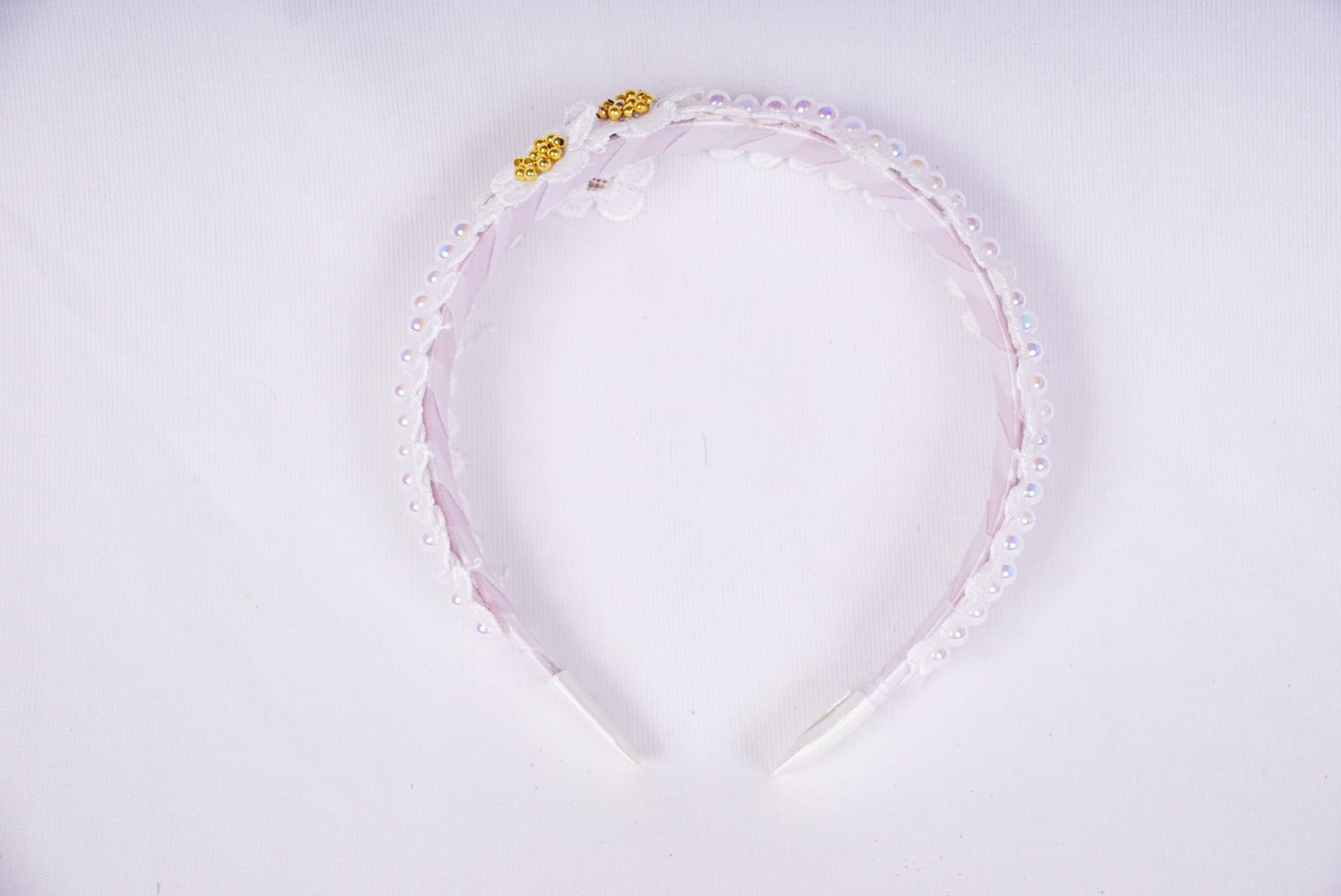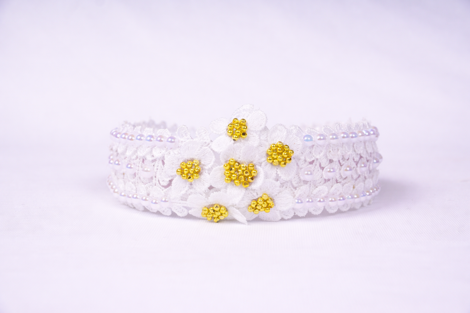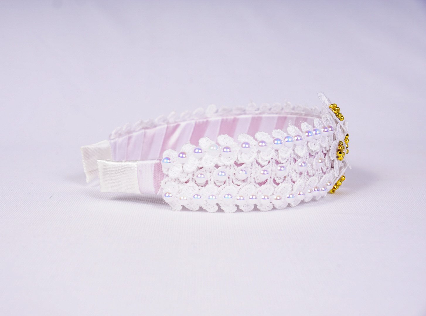 Enhance your look with the Bonvo Beauty Snow Gold Satin Hairband, a premium handmade hair accessory designed for women and girls. Crafted with a soft white satin ribbon base, this elegant hairband features beautiful golden moti (pearl) embellishments and delicate floral detailing for a luxurious and sophisticated finish.