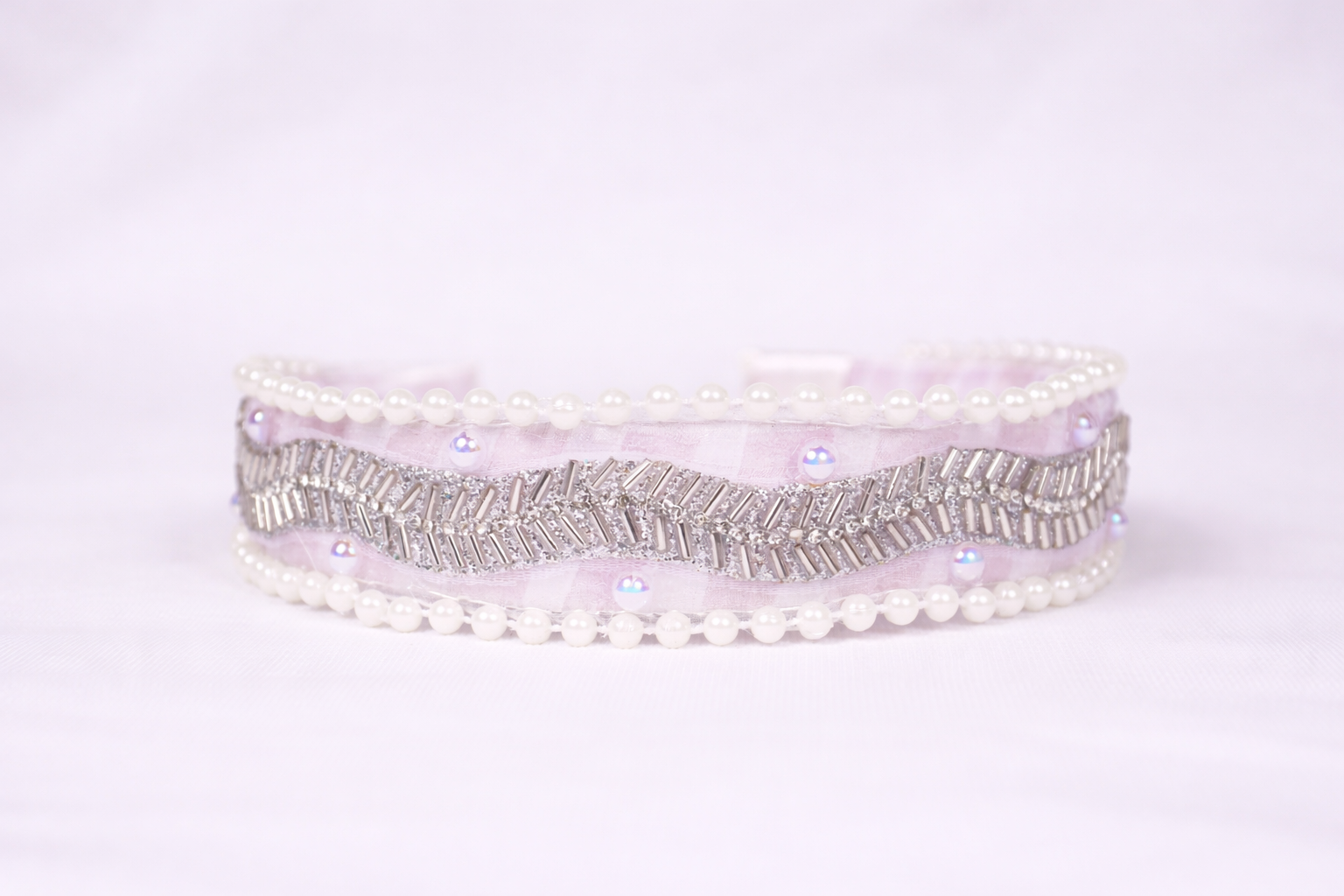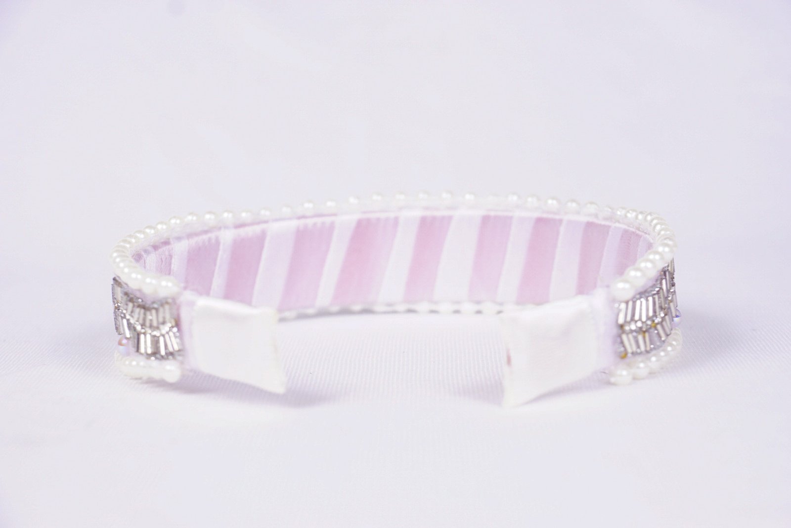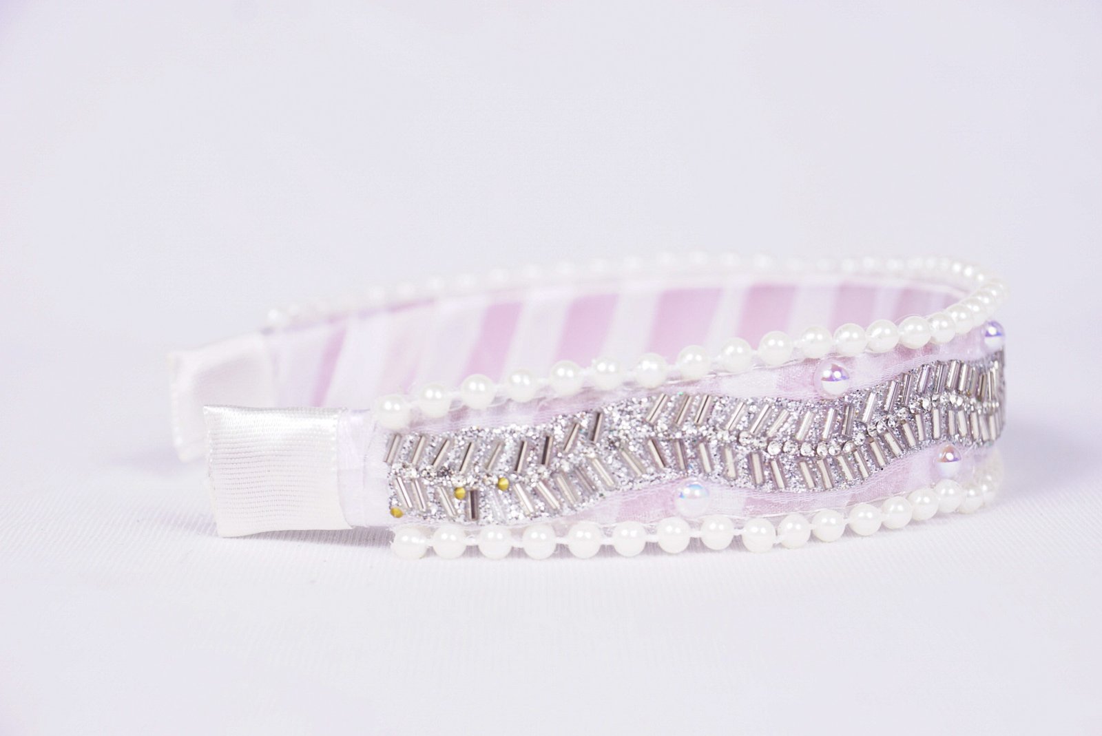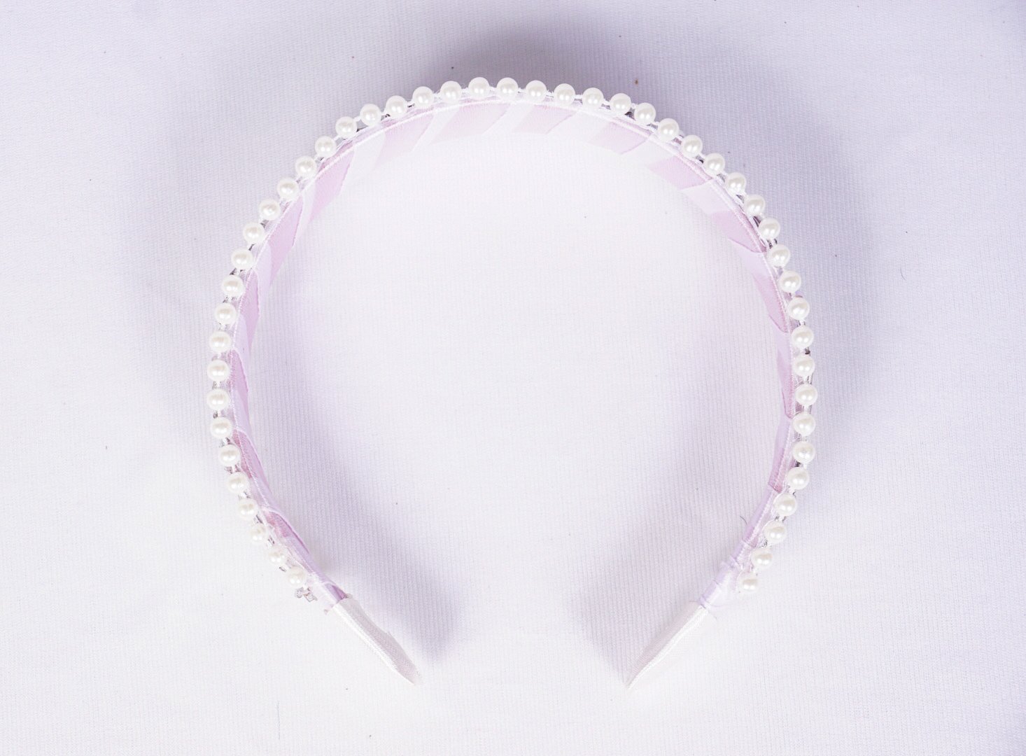Valley Handmade Hairband for Women & Girls | Elegant White Plastic Hairband with Ribbon & Pearl (Free Size)